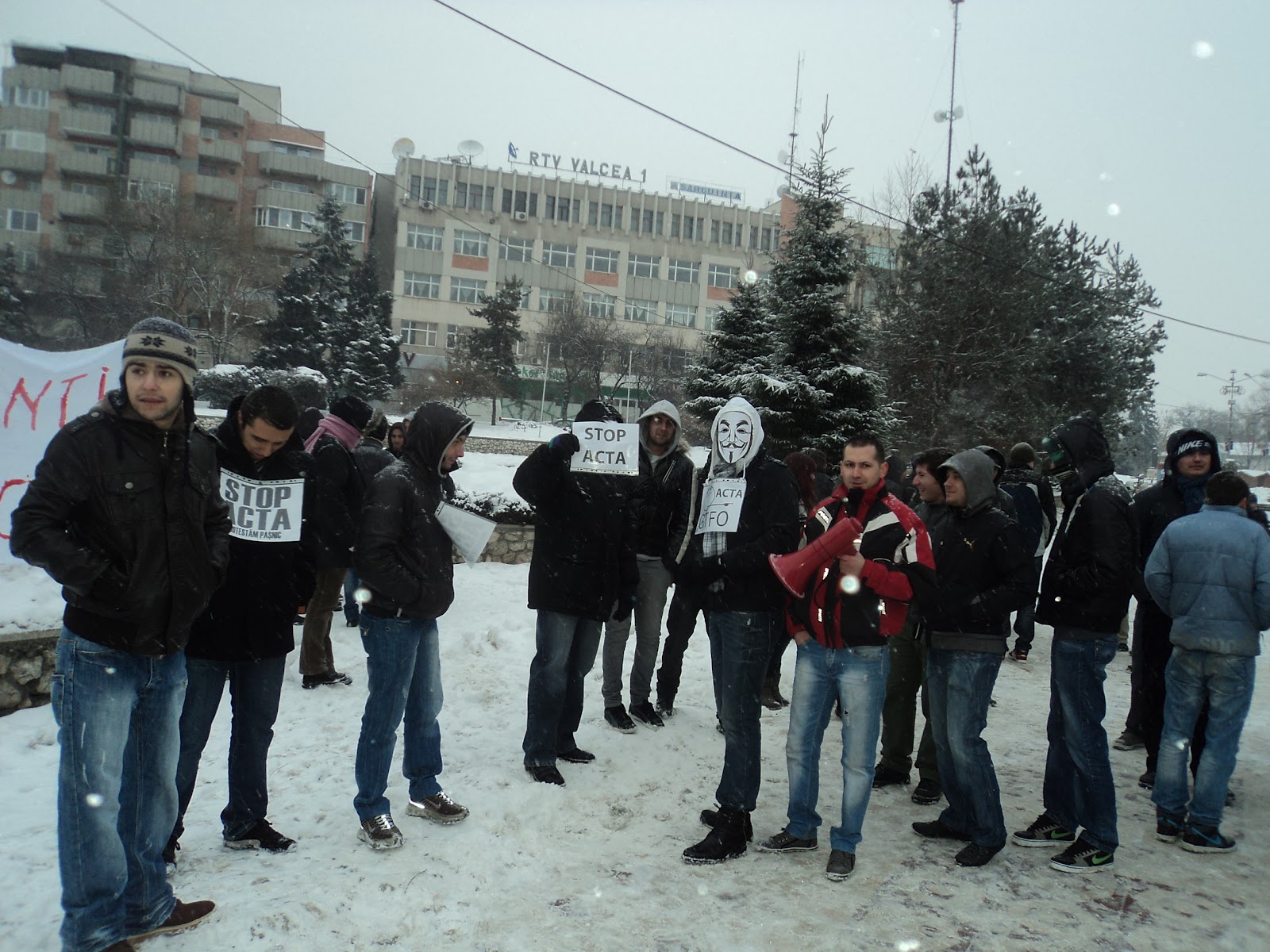 On the 11th of February, at -10 degrees Celsius, almost 80 people went out in the center of Ramnicu-Valcea, Romania, demanding the EU to reject the ratification of the Anti-Counterfeiting Trade Agreement, a global treaty which was signed in secrecy, that could allow corporations and governments to censor the internet.